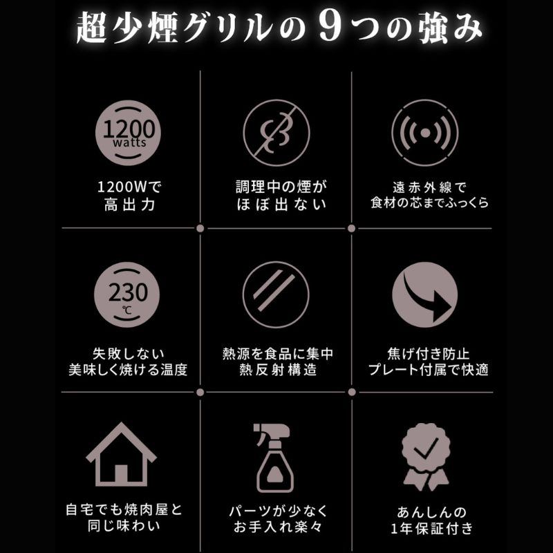 ほぼ無煙ロースターの主な特徴