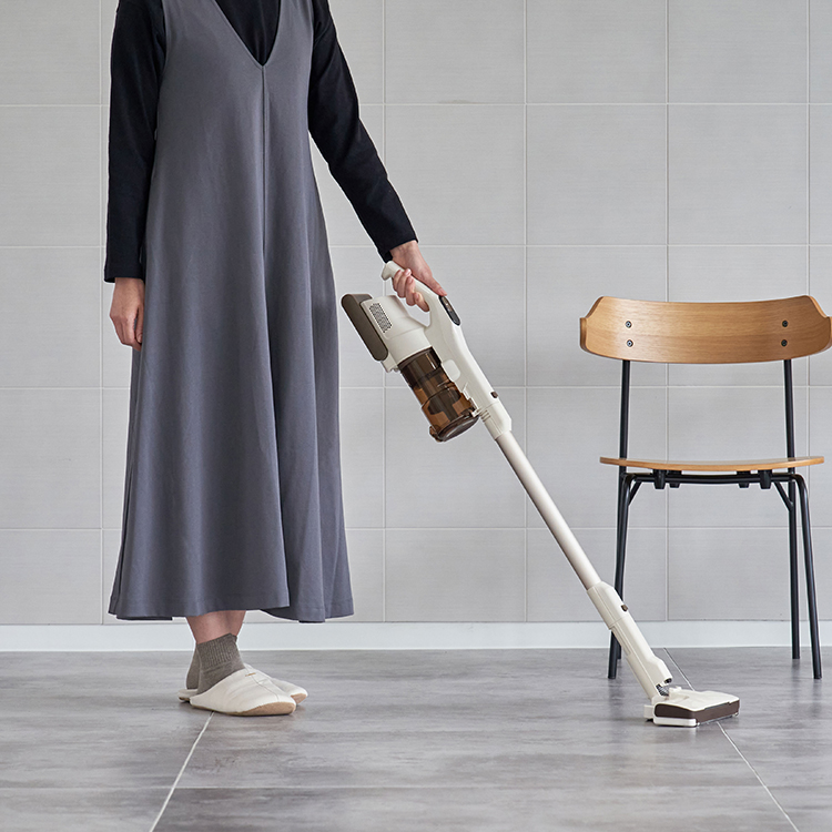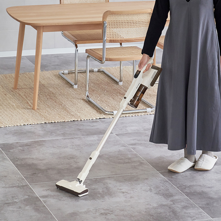 | コードレスながらパワフルな吸引力を実現。フローリングの隙間に入った細かな塵も、じゅうたんに絡んだごみも、逃さずしっかり吸引します。 |