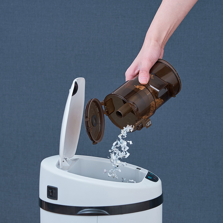 | 溜まったごみは、ワンタッチでふたを開けてごみ箱に捨てるだけ。手を汚さず衛生的、紙パックを使用しないためランニングコストもかかりません。 |