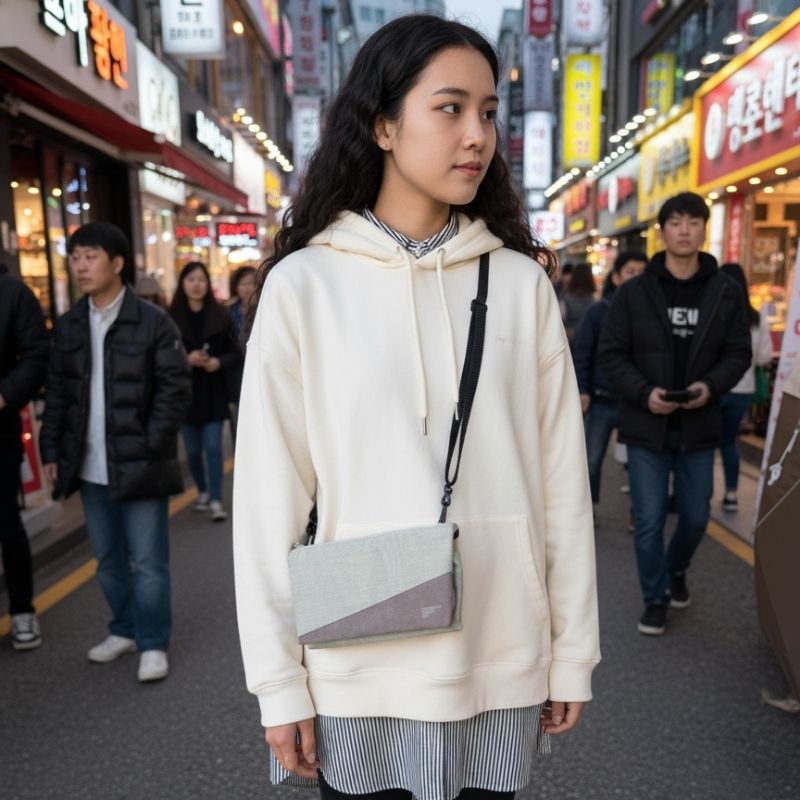 | 韓国旅行などショッピングをすることが多い場合、タックスリファウンドを受けたり申請するときに、レジでパスポートの提示が必要になります。 このサコッシュなら、パスポートはもちろん、WOWPASSのクレカやT-MONEYも収納でき、レシートも何種類かに分けらえるスライドパーツがありとっても便利です。 また、上部にはファスナー付きのポケットがあり、セキュリティーが怖い観光地などもしっかりと保護することができます。 もちろん、ハンカチやティッシュなどすぐに取り出したいものの収納も可能です。 |