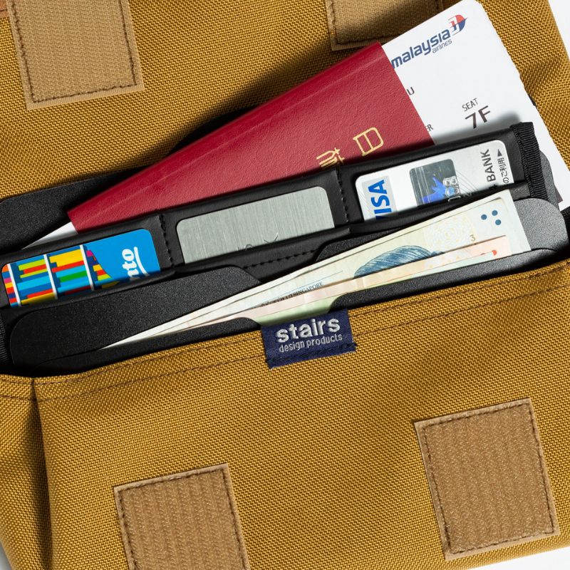 | 旅をテーマに利便性を追求した「スライド式」サコッシュ。 内側にはスライドパーツが組み込まれており、パスポートやチケット、紙幣、カードなどを仕分けて収納でき、段違いに飛び出す構造です。 必要なものが見つけやすく、出し入れしやすいです。 パスポートや地図の代わりに手帳や通帳、レシートなどを収納すると、普段使いももちろん可能です。 ショルダーベルトを外すとポーチとして使うこともできます。 |