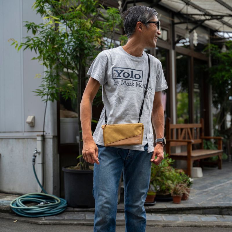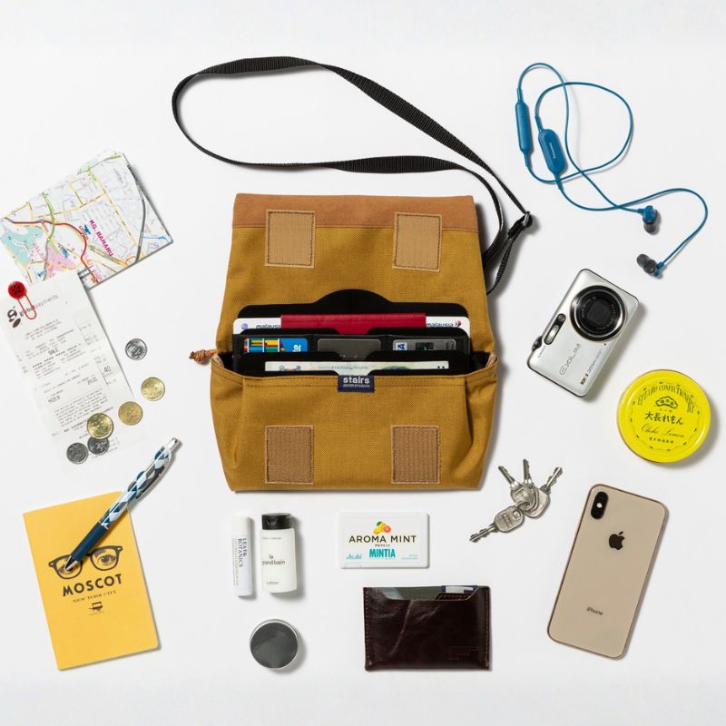 | ワイドサイズのサコッシュは、航空チケットもそのまま入れられるので、出国前から帰国まで肌身離さず使える必需品です。 ガジェット含めたあらゆる小物も入れられます。 |