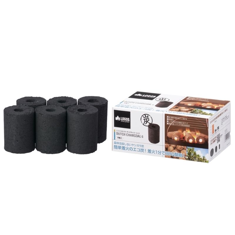 LOGOS ロゴス エコココロゴス・ダッチチャコール6 着火1分でBBQ開始 着火剤のように簡単に火がおきる長時間安定燃焼のエコ炭 6個入り BBQの必需品